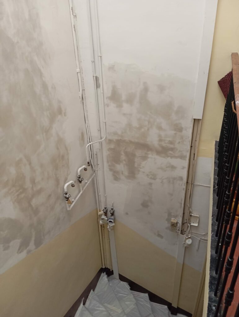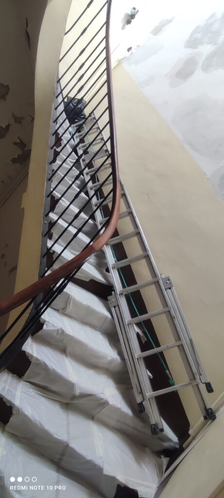 🔧 Cette semaine, nos équipes sont mobilisées pour la rénovation d’un puits de lumière et des murs dans une cage d’escalier. Un travail en hauteur qui demande rigueur, sécurité et précision.