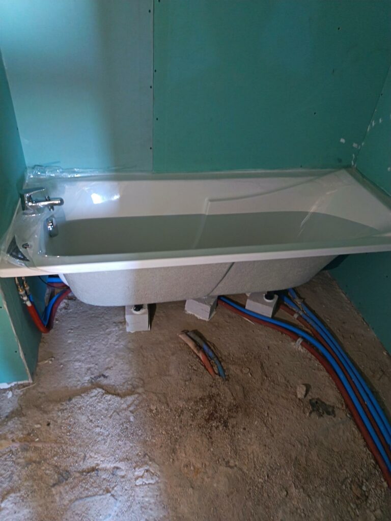 📸 Découvrez en images les différentes étapes de cette rénovation : de la reprise des réseaux à l’installation de la baignoire, en passant par les travaux de plomberie et d’électricité.